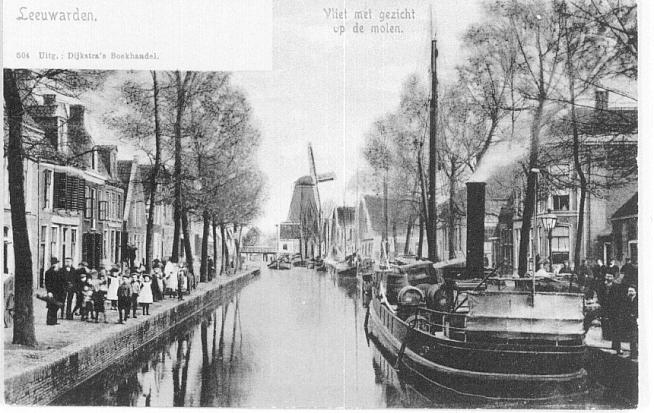 Molen aan de Vliet te Leeuwarden. Aldaar stond ook de molen van onze voorvaders.